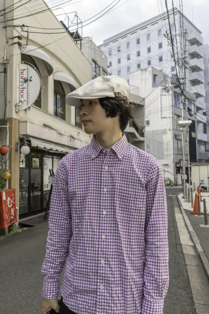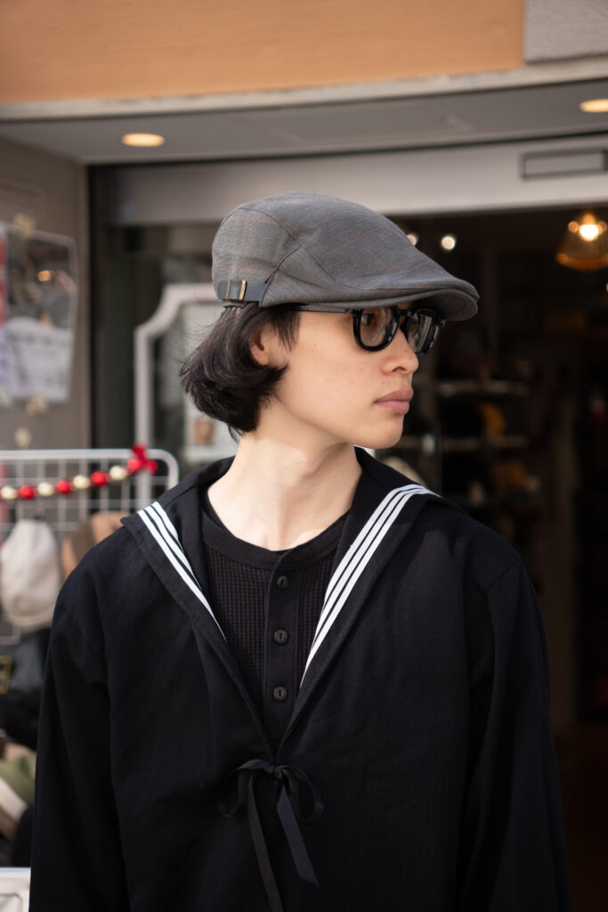 ハンチングを浅くちょこんと被ると、